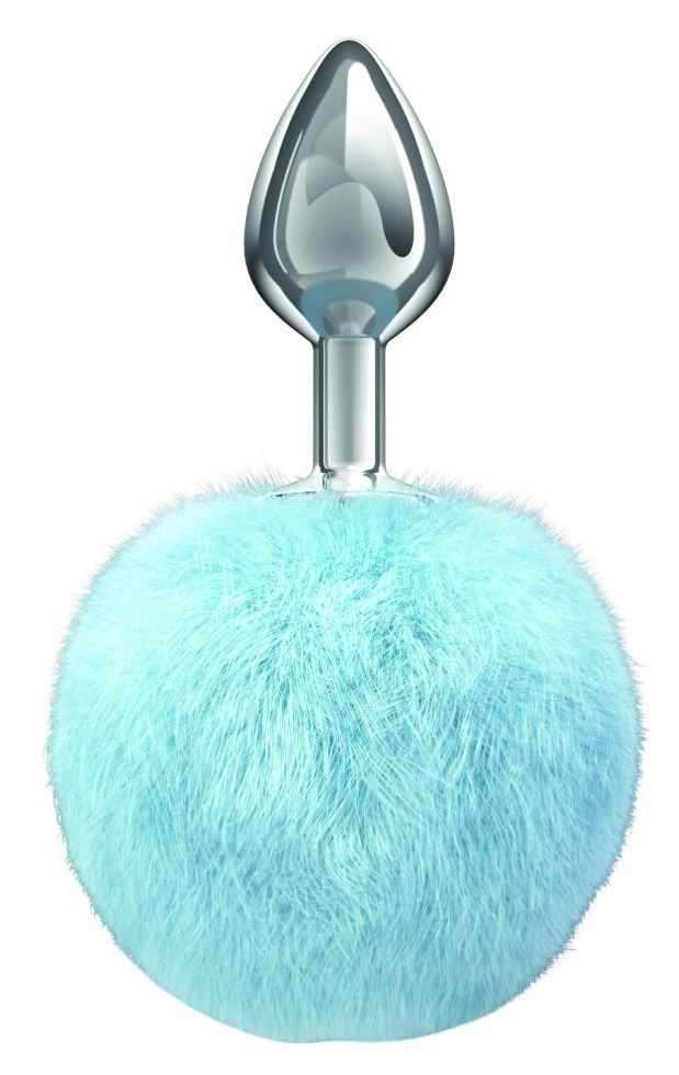 Серебристая анальная пробка с голубым пушистым хвостиком Twinkle