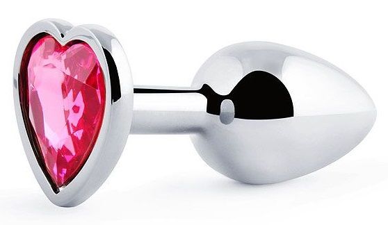 Купить Серебристая анальная пробка с малиновым кристаллом-сердечком - 7 см. Anal Jewelry Plug по лучшей цене с доставкой - секс-шоп Ynunu.ru