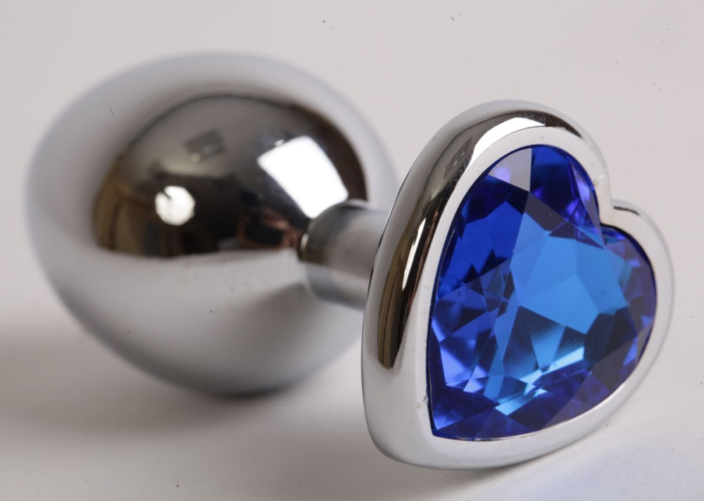 Купить Серебристая анальная пробка с синим кристаллом-сердцем - 9 см. 4sexdreaM по лучшей цене с доставкой - секс-шоп Ynunu.ru