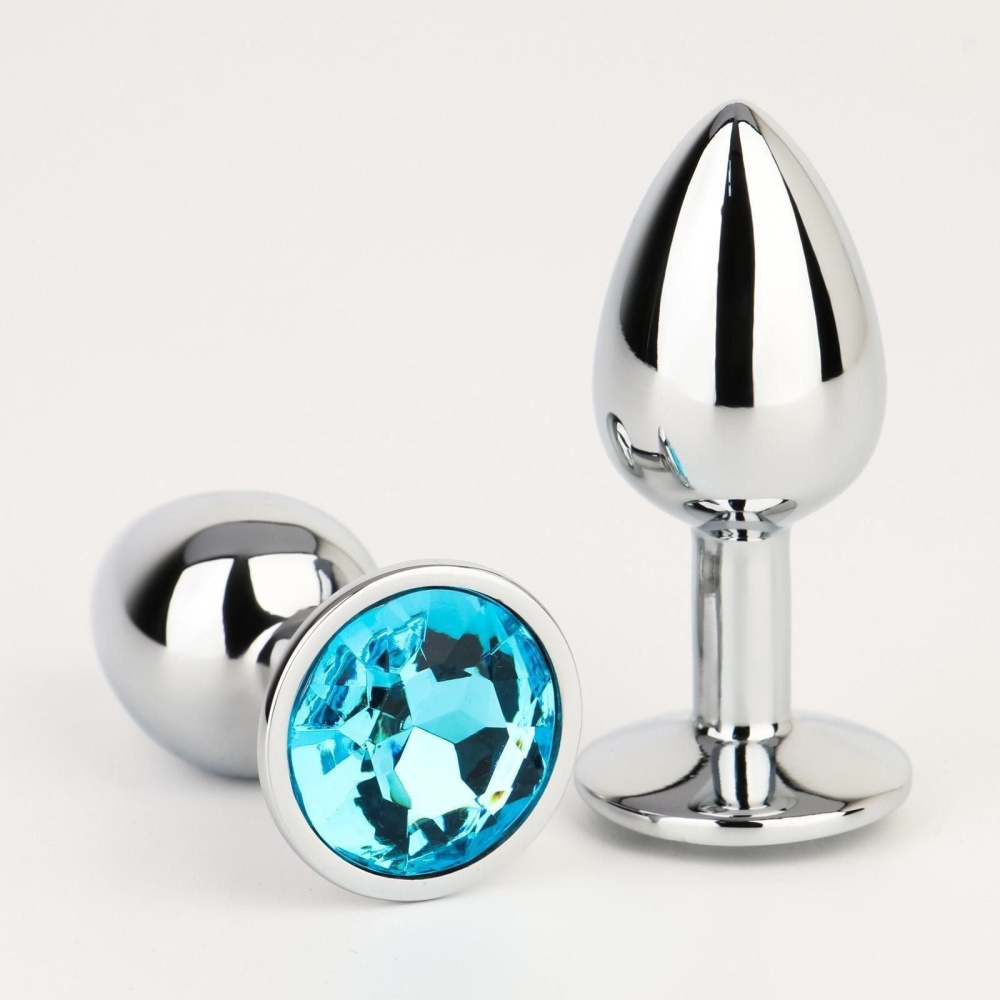 Купить Серебристая анальная втулочка с голубым кристаллом - 7 см. Сима-Ленд по лучшей цене с доставкой - секс-шоп Ynunu.ru