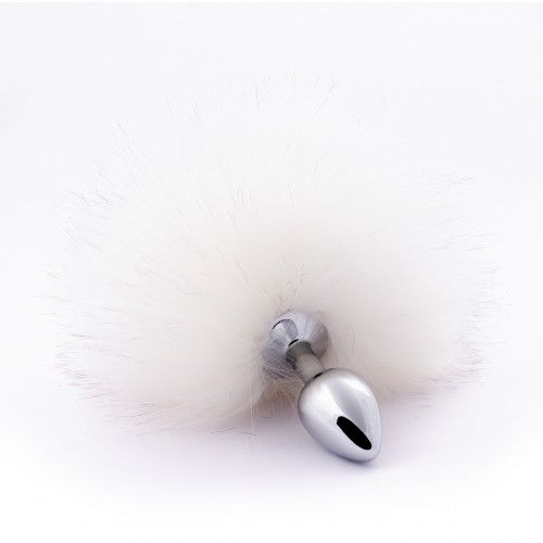 Купить Серебристая металлическая анальная пробка с белым хвостиком Crazy Handmade по лучшей цене с доставкой - секс-шоп Ynunu.ru