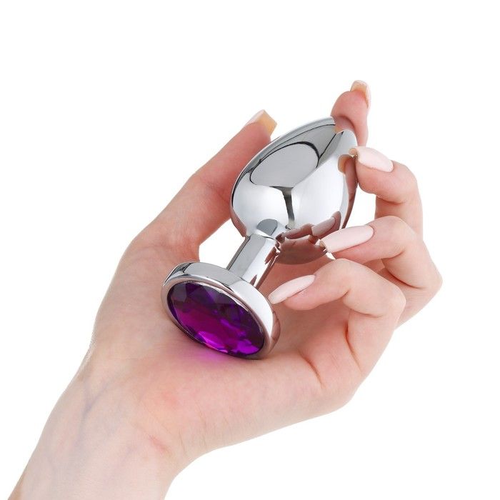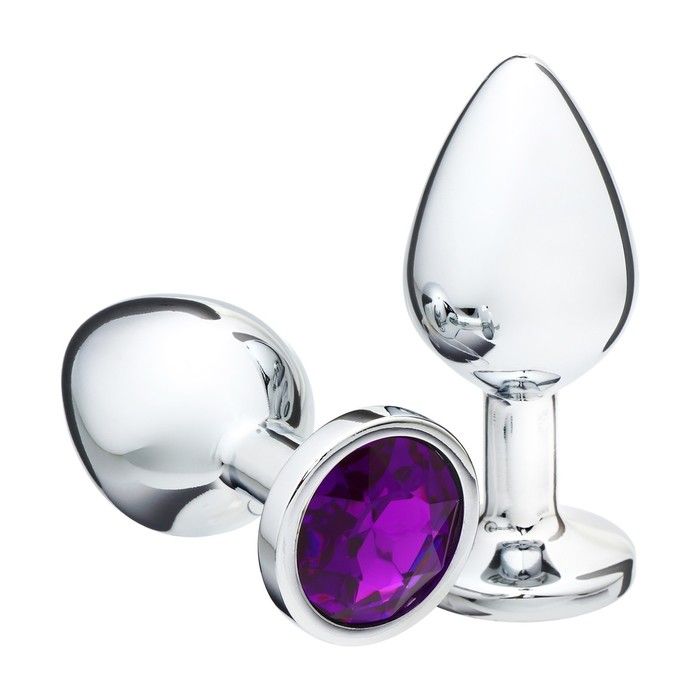 Купить Серебристая металлическая анальная пробка с фиолетовым кристаллом - 9 см. Сима-Ленд по лучшей цене с доставкой - секс-шоп Ynunu.ru