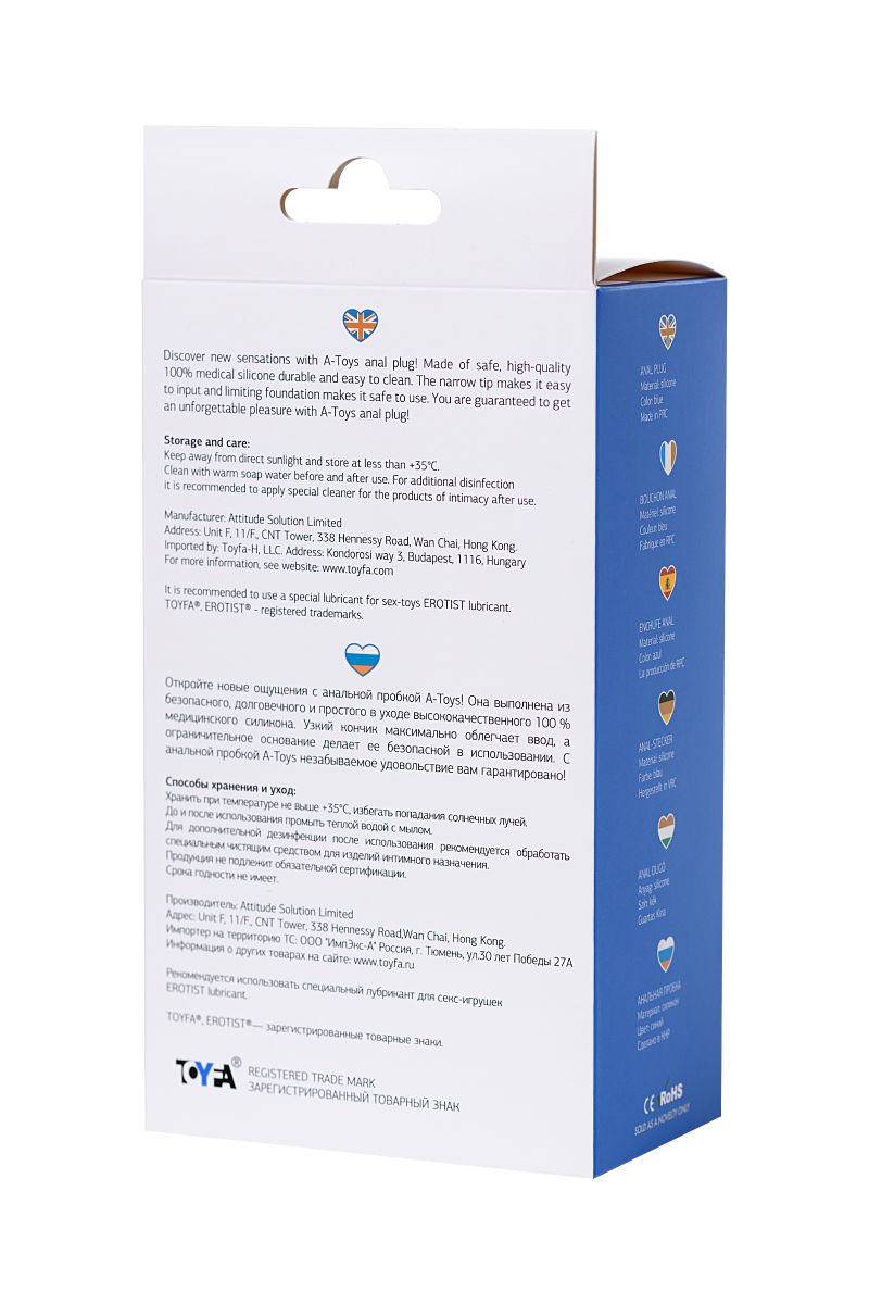 Откройте новые ощущения с анальной пробкой A-Toys! Она выполнена из безопасного, долговечного и простого в уходе высококачественного 100 % медицинского силикона. Узкий кончик максимально облегчает ввод, а ограничительное основание делает ее безопасной в использовании. С анальной пробкой A-Toys незабываемое удовольствие вам гарантировано! Рабочая длина - 5,8 см.