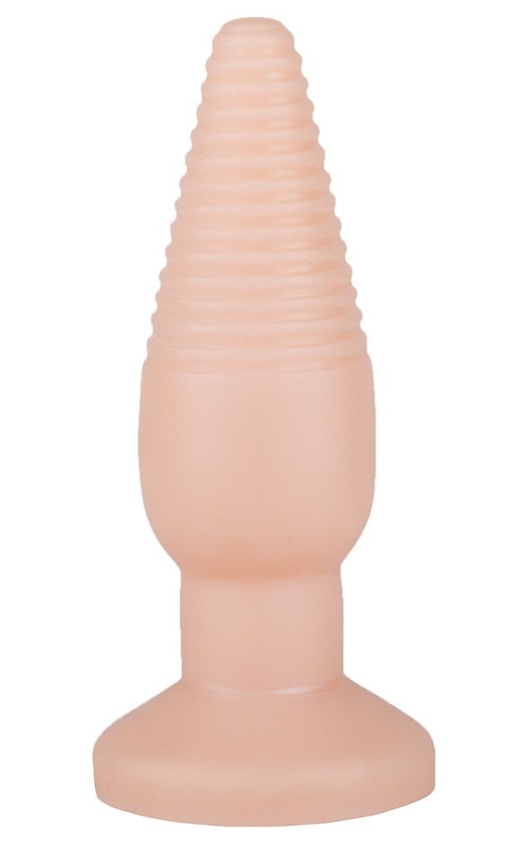 Телесная анальная пробка с рёбрышками - 14 см.