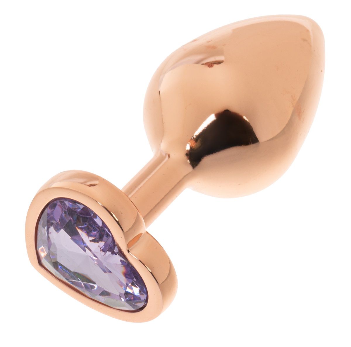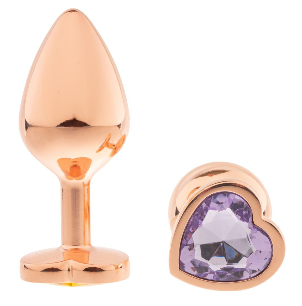 Купить Золотистая анальная пробка OYO с сиреневым кристаллом-сердцем - 7,3 см. OYO по лучшей цене с доставкой - секс-шоп Ynunu.ru