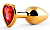 Купить Золотистая анальная пробка с красным стразом-сердечком - 7 см. Anal Jewelry Plug по лучшей цене с доставкой - секс-шоп Ynunu.ru