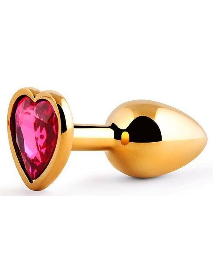 Купить Золотистая анальная пробка с малиновым кристаллом-сердечком - 7 см. Anal Jewelry Plug по лучшей цене с доставкой - секс-шоп Ynunu.ru