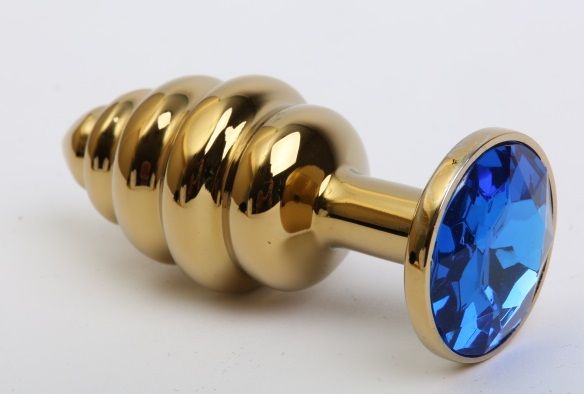 Купить Золотистая рифлёная пробка с синим стразом - 8,2 см. 4sexdreaM по лучшей цене с доставкой - секс-шоп Ynunu.ru