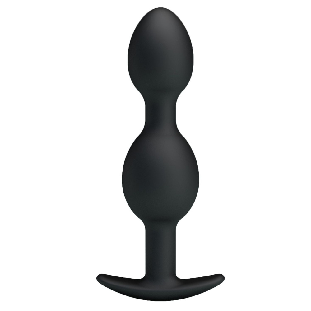 Чёрные анальные шарики из силикона - невероятно приятные на ощупь. Два расширения в виде шариков различного диаметра. В процессе движения стимулятор будет дополнительно массажировать внутренние стенки. Это происходит, так в игрушке реализован принцип смещенного центра тяжести, как в вагинальных шариках. Внутри расположен шарик меньшего диаметра, который при движении ударяется о стенки игрушки, тем самым вызывая механическую вибрацию, очень легкую, но тем не менее дополнительно стимулирующую во время стимуляции. Диаметр меньшего шарика - 2,3 см.