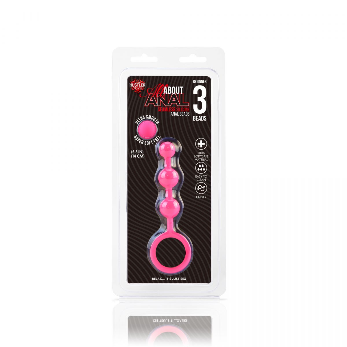 Розовая анальная цепочка из 3 шариков - 14 см.