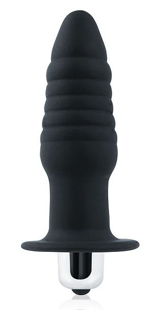 Купить Черная ребристая вибровтулка с ограничителем - 9 см. Sex Expert по лучшей цене с доставкой - секс-шоп Ynunu.ru