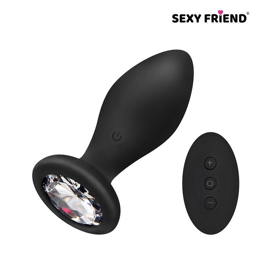 Купить Черная вибровтулка с прозрачным кристаллом и пультом ДУ - 8,5 см. Sexy Friend по лучшей цене с доставкой - секс-шоп Ynunu.ru