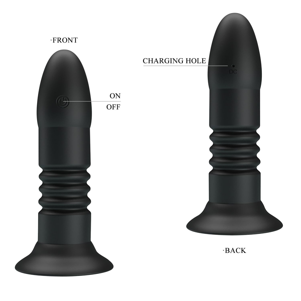 Анальный стимулятор из силикона, обладающий 4 режимами вибрации и функцией поступательных движений вверх-вниз. Удобно управляется дистанционным пультом (режимы так же переключаются на самой игрушке). Имеет устойчивое основание-присоску, которое является так же и ограничительным основанием для безопасного использования. Рабочая длина - 12 см.