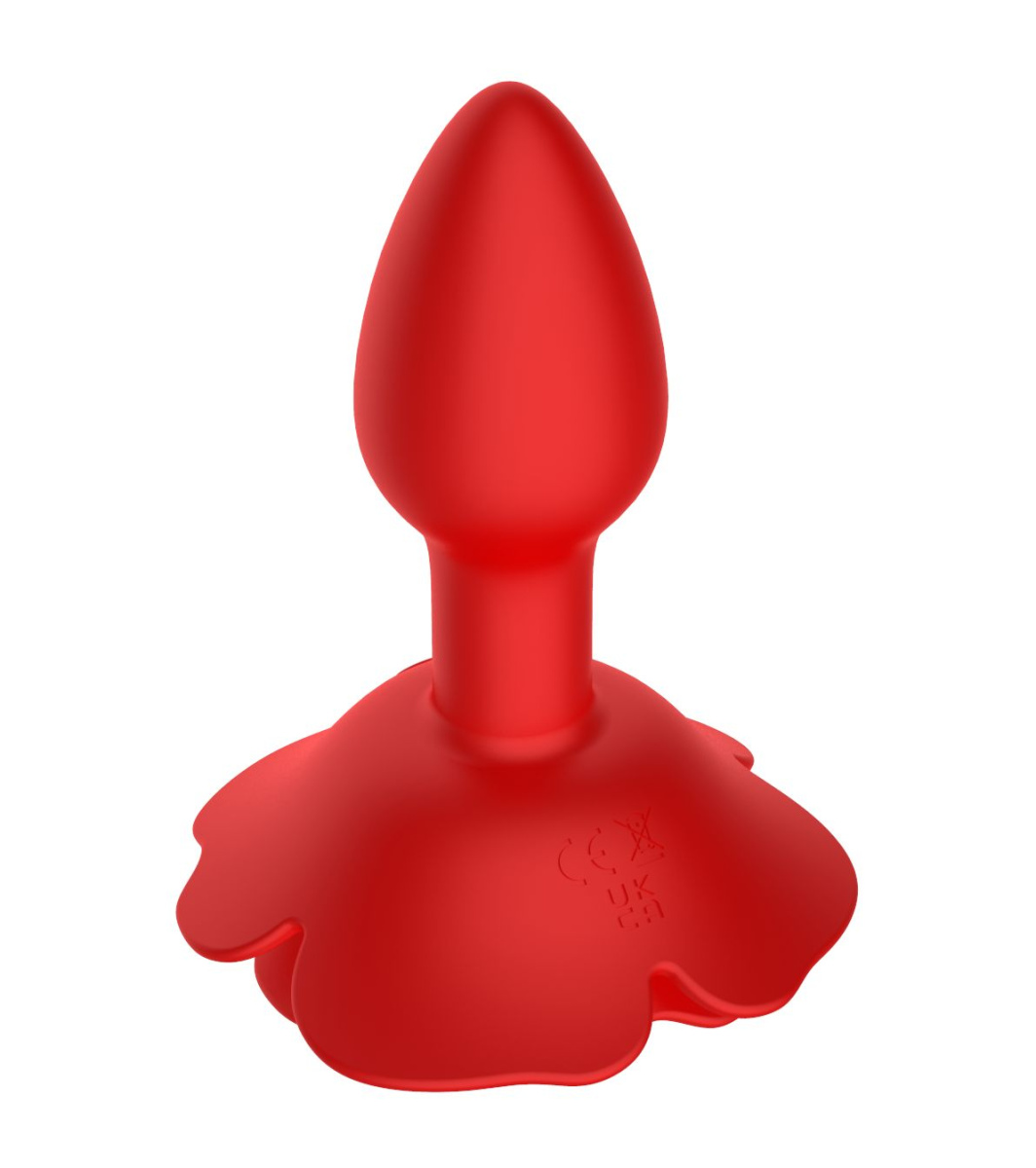 Красный анальный вибростимулятор в форме розы. С пультом ДУ. Имеет 10 режимов вибрации.