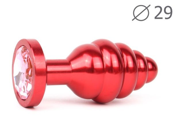 Купить Красная анальная втулка с розовым кристаллом - 7,1 см. Anal Jewelry Plug по лучшей цене с доставкой - секс-шоп Ynunu.ru