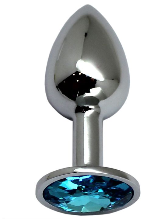 Купить Серебристая анальная пробка с голубым стразом - 7 см. Eroticon по лучшей цене с доставкой - секс-шоп Ynunu.ru