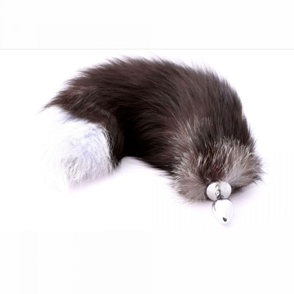 Серебристая анальная пробка с натуральным лисьим хвостиком
