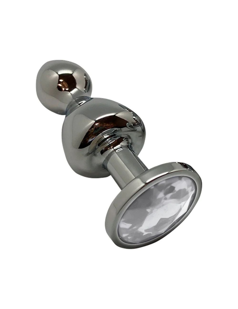 Купить Серебристая анальная втулка Wooomy Lollypop L с прозрачным кристаллом - 10,5 см. Adrien Lastic по лучшей цене с доставкой - секс-шоп Ynunu.ru