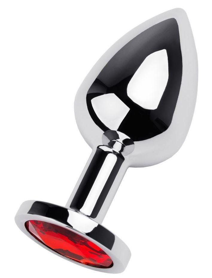 Купить Серебристая коническая анальная пробка с красным кристаллом - 8 см. ToyFa по лучшей цене с доставкой - секс-шоп Ynunu.ru