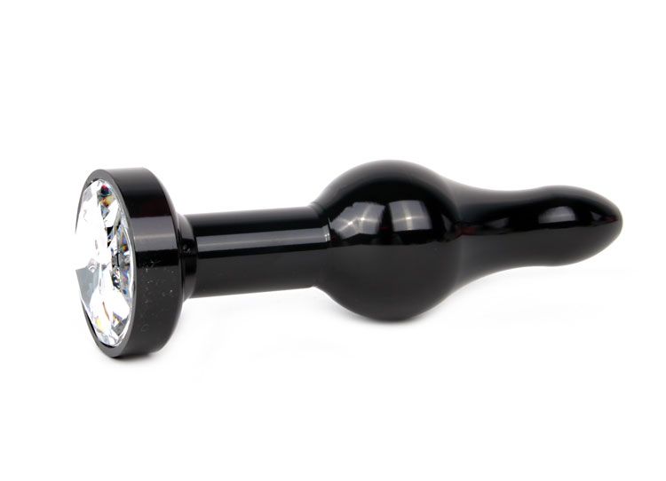Купить Удлиненная шарикообразная черная анальная втулка с прозрачным кристаллом - 10,3 см. Anal Jewelry Plug по лучшей цене с доставкой - секс-шоп Ynunu.ru