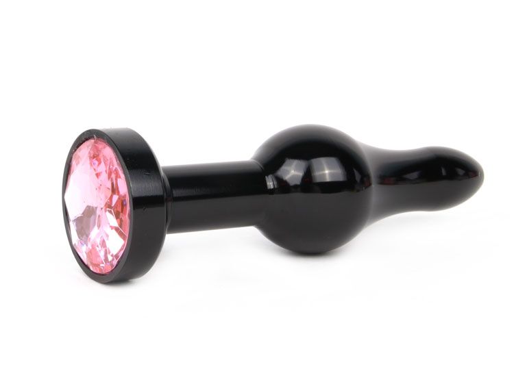 Купить Удлиненная шарикообразная черная анальная втулка с розовым кристаллом - 10,3 см. Anal Jewelry Plug по лучшей цене с доставкой - секс-шоп Ynunu.ru