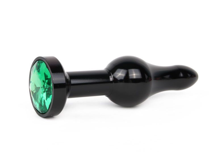 Купить Удлиненная шарикообразная черная анальная втулка с зеленым кристаллом - 10,3 см. Anal Jewelry Plug по лучшей цене с доставкой - секс-шоп Ynunu.ru