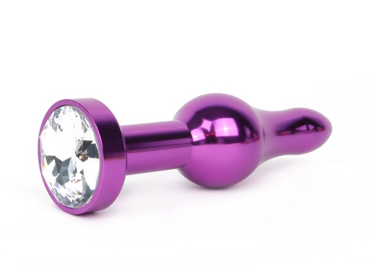 Купить Удлиненная шарикообразная фиолетовая анальная втулка с прозрачным кристаллом - 10,3 см. Anal Jewelry Plug по лучшей цене с доставкой - секс-шоп Ynunu.ru