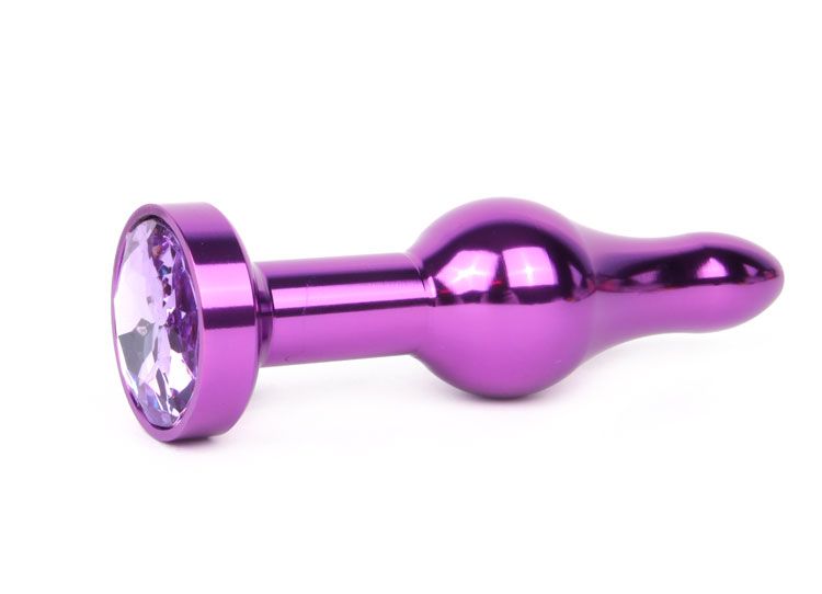 Удлиненная шарикообразная фиолетовая анальная втулка с сиреневым кристаллом - 10,3 см.