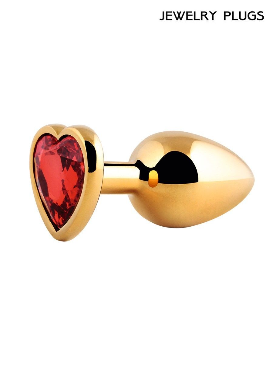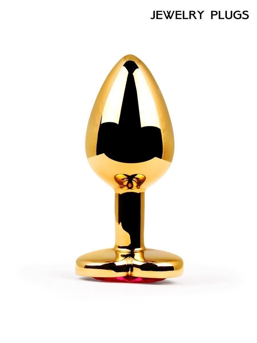 Купить Золотистая анальная пробка с красным кристаллом - 9 см. Anal Jewelry Plug по лучшей цене с доставкой - секс-шоп Ynunu.ru