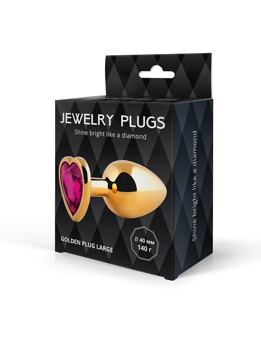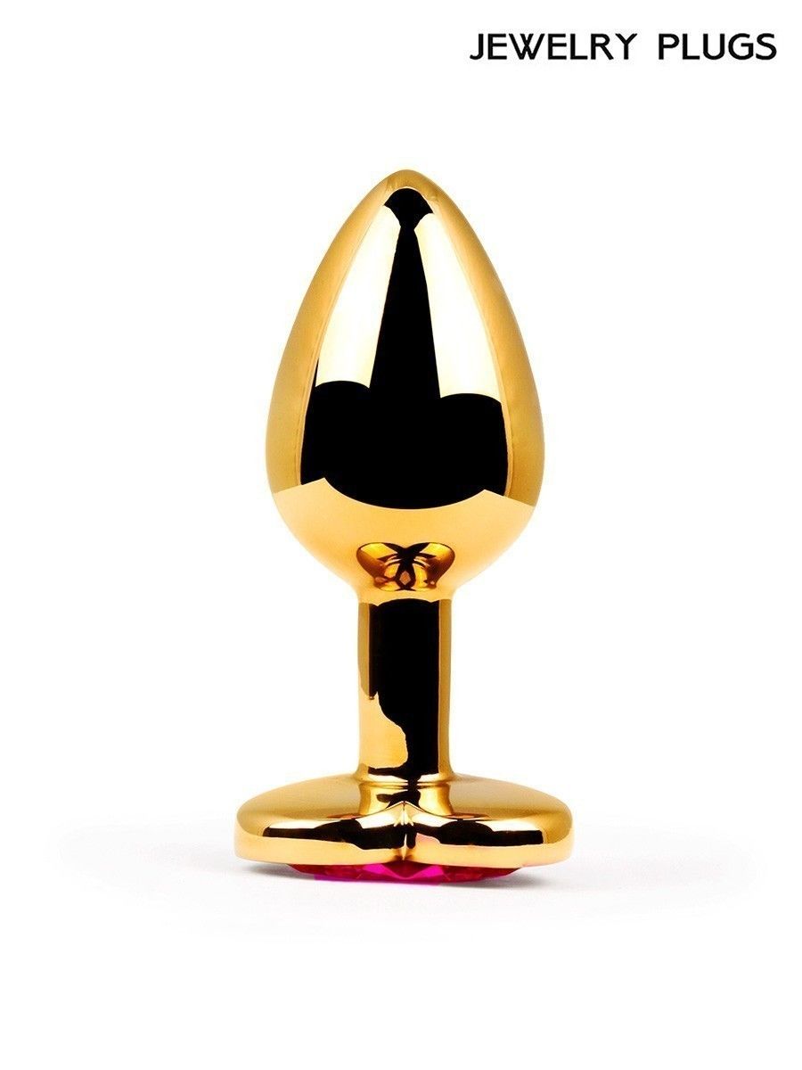 Купить Золотистая анальная пробка с малиновым кристаллом - 9 см. Anal Jewelry Plug по лучшей цене с доставкой - секс-шоп Ynunu.ru