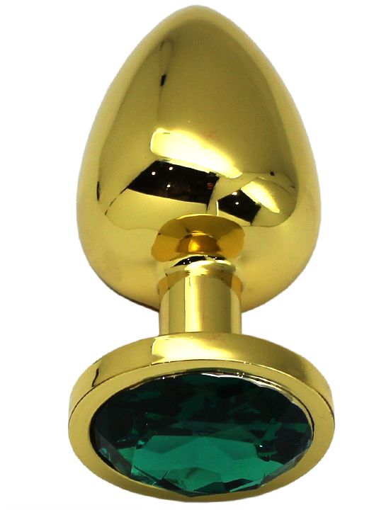 Купить Золотистая анальная втулка с изумрудным кристаллом - 9,5 см. Eroticon по лучшей цене с доставкой - секс-шоп Ynunu.ru