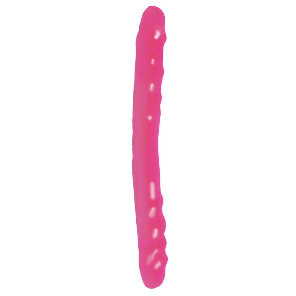 Полупрозрачный двойной фаллоимитатор розового цвета. Материал - каучук. Рельефный, невероятно гибкий и приятный на ощупь.
