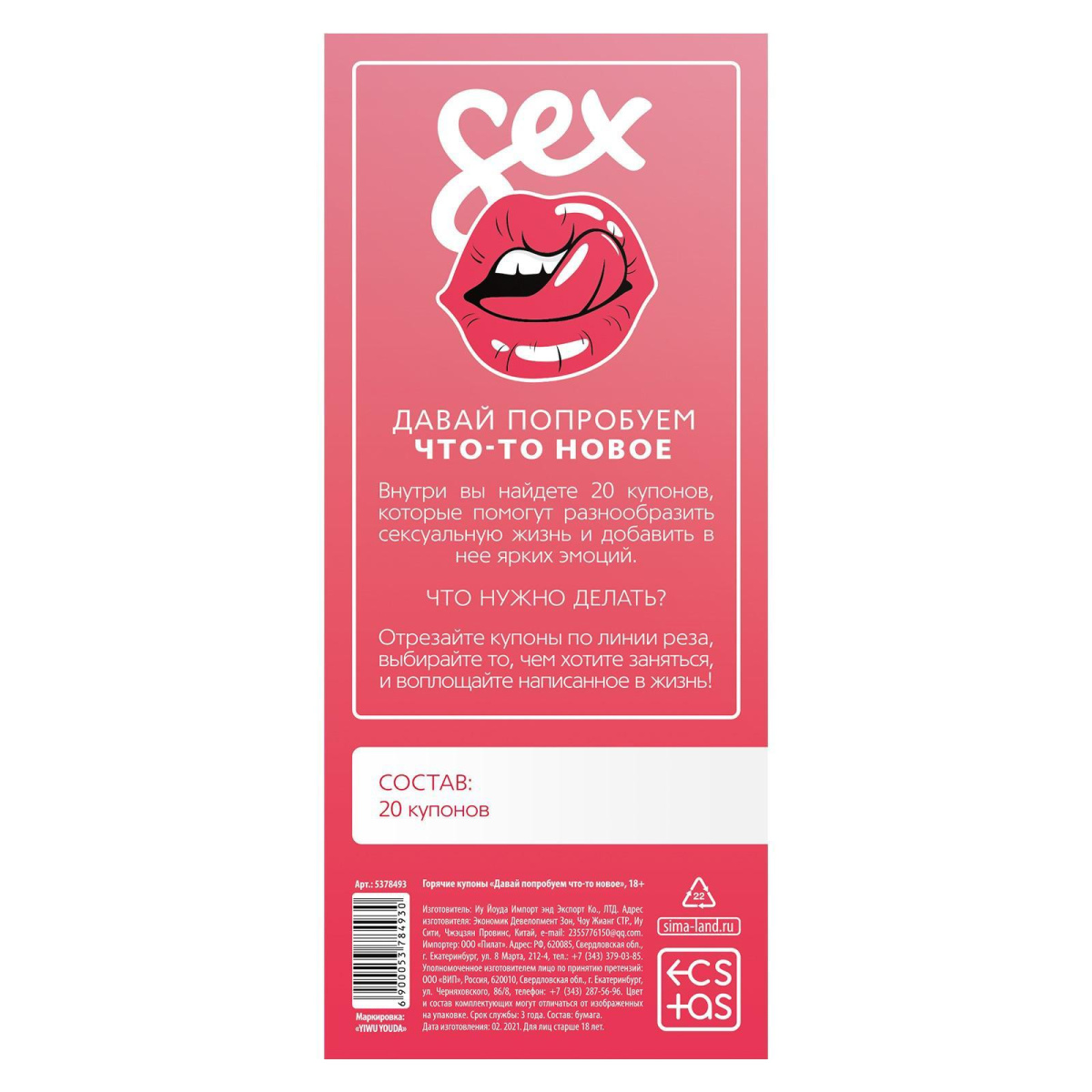 Купить Эротическая игра с купонами «Давай попробуем что-то новое» Сима-Ленд по лучшей цене с доставкой - секс-шоп Ynunu.ru