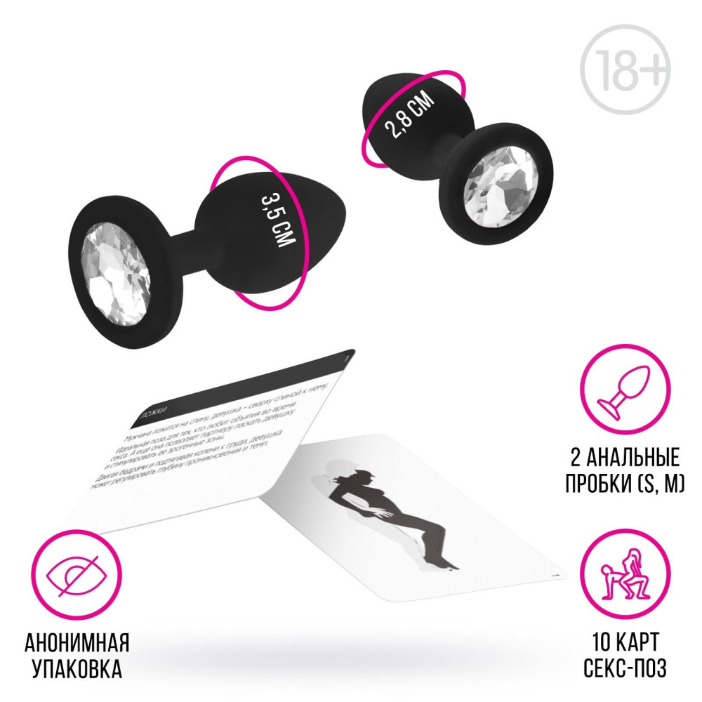 Пикантный секрет для вашего удовольствия. Этот набор позволит вам разнообразить сексуальную жизнь и добавить в неё немного перчинки. Вас ждут 5 карт с позами для секса: на одной стороне описание позы, а на другой - иллюстрация. Выбирайте позы, которые хотите попробовать сегодня, и наслаждайтесь друг другом. Также в комплект входят 2 анальные втулки разного размера для активации чувствительных окончаний и получения новых ощущений. В комплекте: 5 карт, 2 анальные пробки (размера S и M).