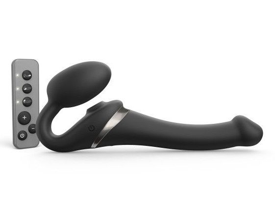 Черный безремневой страпон Multi Orgasm Size S с клиторальной стимуляцией