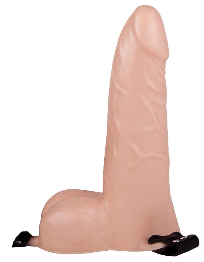 Пустотелый реалистичный фаллопротез на ремешках с заклепками - 18,5 см.