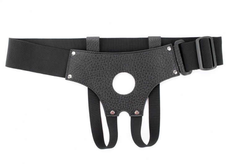 Трусики выполнены из натуральной кожи черного цвета с элементами из черных эластичных резинок, надежно фиксирующих изделие на теле. Трусики-джоки обеспечивают доступ к интимным зонам. Размер удобно регулируется, подойдет на 42-46. Максимально комфортный аксессуар разнообразит любую БДСМ игру. Диаметр отверстия для страпона - 4 см.