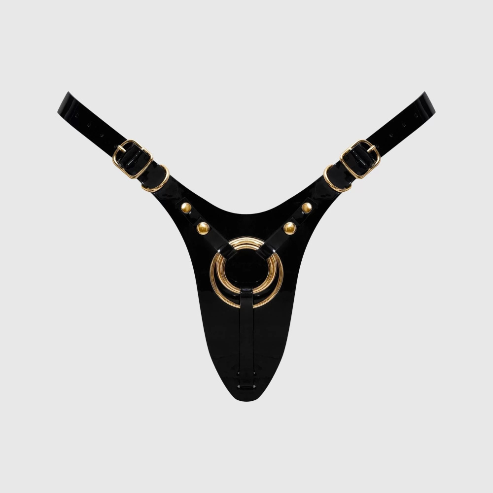 Роскошный пояс для страпона Fabulous бросает вызов условностям, переосмысливая классические стринги через призму бескомпромиссного гламура. Каждая деталь тщательно продумана: минималистичная спинка-стринги деликатно подчеркивает линию ягодиц, а глянцевое лаковое покрытие придает люксовый вид. Регулируемые лямки обеспечивают идеальную посадку и полную свободу движений. Три сменных металлических кольца гарантируют надежное крепление фаллоимитаторов разного размера. Диаметр колец - 3,5, 4 и 5 см.