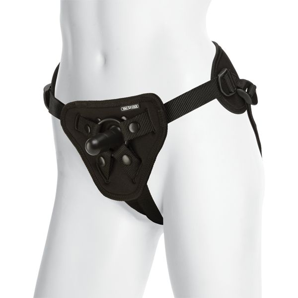 Трусики для страпона повышенной комфортности системы Vack-U-Lock со штырьком для насадок. Трусики держатся на ремешках, которые способны регулироваться до обхвата талии в 175 см. Передник и задник трусиков выполнены из мягкого материала, который обеспечивает наивысший комфорт от их использования. В комплекте идут 3 съемных кольца разных диаметров для лучшей фиксации насадок.