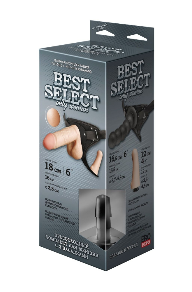 Купить Черный пояс для женщин BEST SELECT с 3 насадками LOVETOY (А-Полимер) по лучшей цене с доставкой - секс-шоп Ynunu.ru