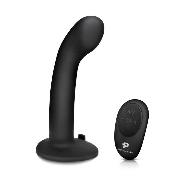 Купить Черный вибрострапон с загнутой головкой Pegasus с пультом ДУ - 15 см. Pegasus по лучшей цене с доставкой - секс-шоп Ynunu.ru