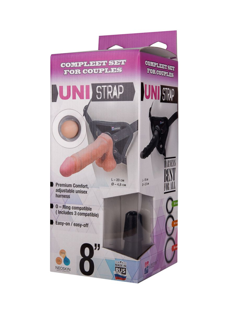 Фаллоимитатор телесного цвета изготовлен из неоскина - материала, в точности имитирующего кожу человека и делающего ощущения максимально пикантными и реалистичными. Второй - из ПВХ. Длина телесной насадки - 20 см., рабочая длина - 18 см., диаметр - 4,8 см.