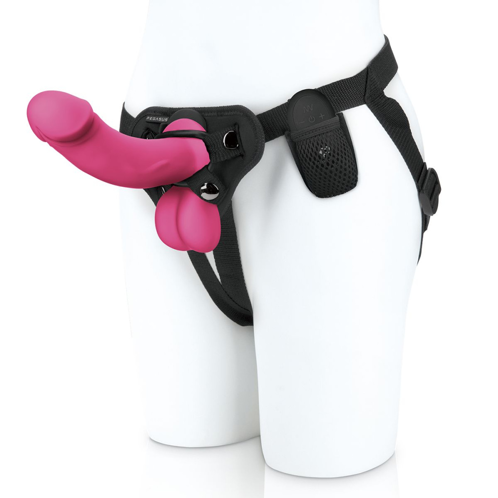 Купить Розовый вибратор-реалистик на трусиках с кольцом - 17,8 см. Pegasus по лучшей цене с доставкой - секс-шоп Ynunu.ru