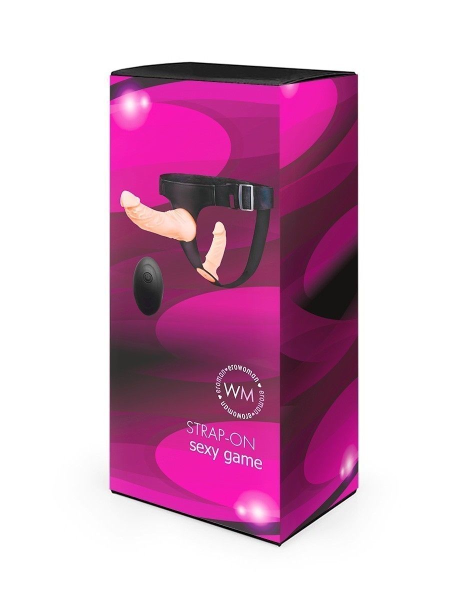 Купить Женский страпон с 2 насадками, вибрацией и пультом ДУ Erowoman-Eroman по лучшей цене с доставкой - секс-шоп Ynunu.ru