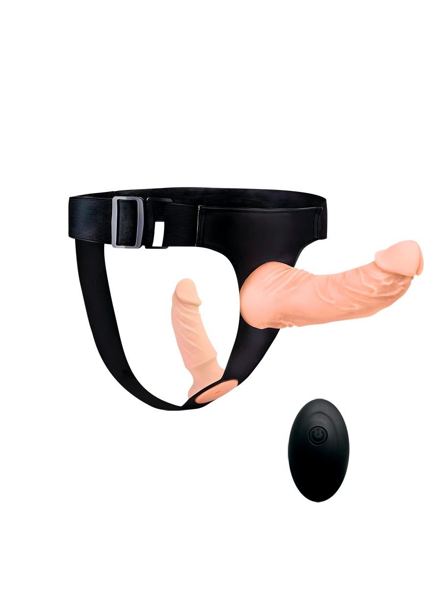 Женский страпон с 2 насадками, вибрацией и пультом ДУ