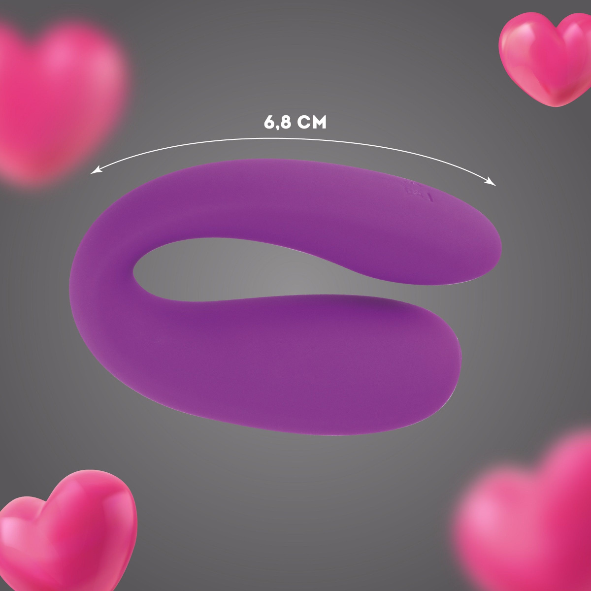 Фиолетовый U-образный вибратор для пар с 1 режимом вибрации. Плотно прилегает к интимным зонам и обеспечивает интенсивную и одновременную вибрацию для двух зон. Благодаря удобному размеру и форме, вибратор можно использовать как соло, так и вдвоём почти в любой позе.