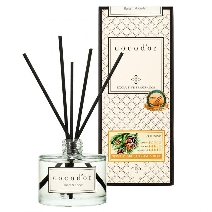 Сочетание ароматов величественного кедра и перуанского бальзама создает атмосферу роскоши, успеха и сосредоточенности, перенося Вас в центр многовекового хвойного леса. Высокая и благородная парфюмерная композиция, как в лучших бутиках Лондона. Арома-диффузор Cocod`or наполнит дом или офис многогранными парфюмерными композициями, оживляя атмосферу вокруг. Выбирайте ароматы, подходящие под Ваш характер или настроение. Флакон из прозрачного стекла с станет стильным дополнением интерьера. Черные палочки изготовлены из специальной пористой микрофибры – аромат будет распространяться равномерно и экономично. Срок действия арома-диффузора Cocod`or до трех месяцев. Абсолютно безвреден для Вас и Ваших близких. Не содержат спирт.