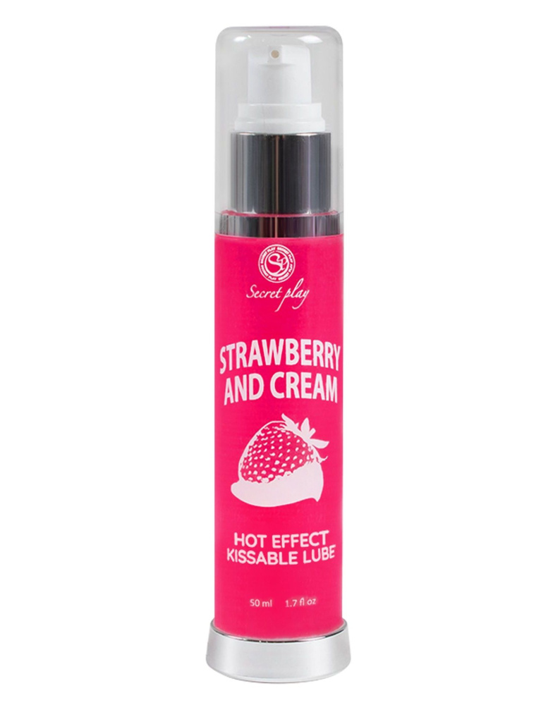 Купить Массажное масло 2-в-1 с разогревающим эффектом и вкусом клубники со сливками - 50 мл. Secret Play по лучшей цене с доставкой - секс-шоп Ynunu.ru