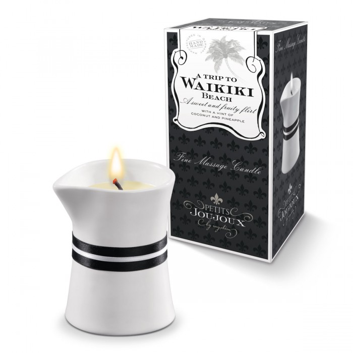 Купить Массажное масло в виде малой свечи Petits Joujoux Waikiki Beach с ароматом кокоса и ананаса MyStim по лучшей цене с доставкой - секс-шоп Ynunu.ru