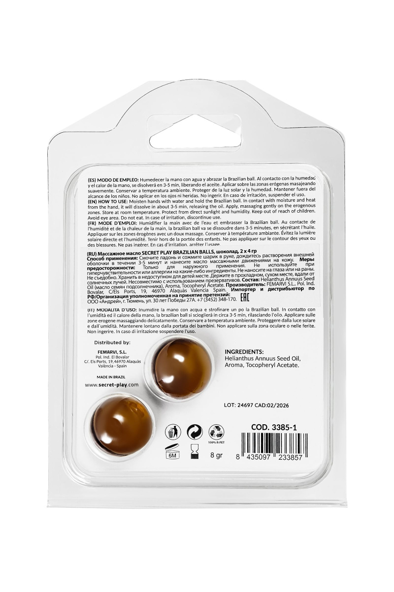 Купить Набор из 2 шариков с массажным маслом Brazilian Balls с ароматом шоколада Secret Play по лучшей цене с доставкой - секс-шоп Ynunu.ru